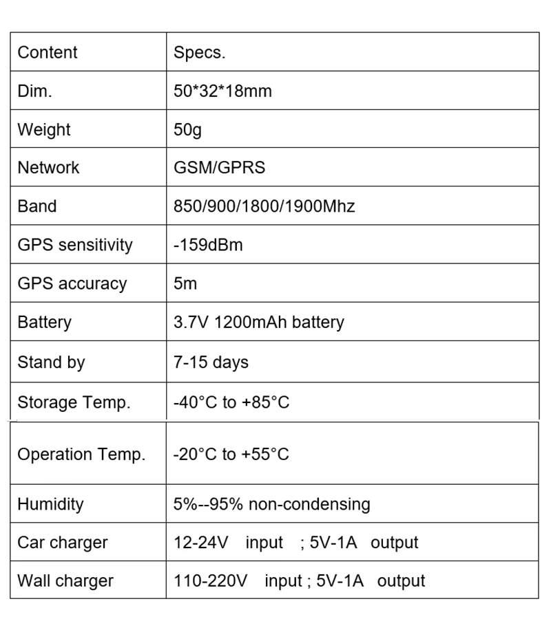 • 2G GSM 850/900/1800/1900Mhz